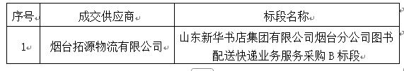 云鼎国际新华书店集团有限公司烟台分公司图书配送快递业务服务采购(B标段)中标结果公示